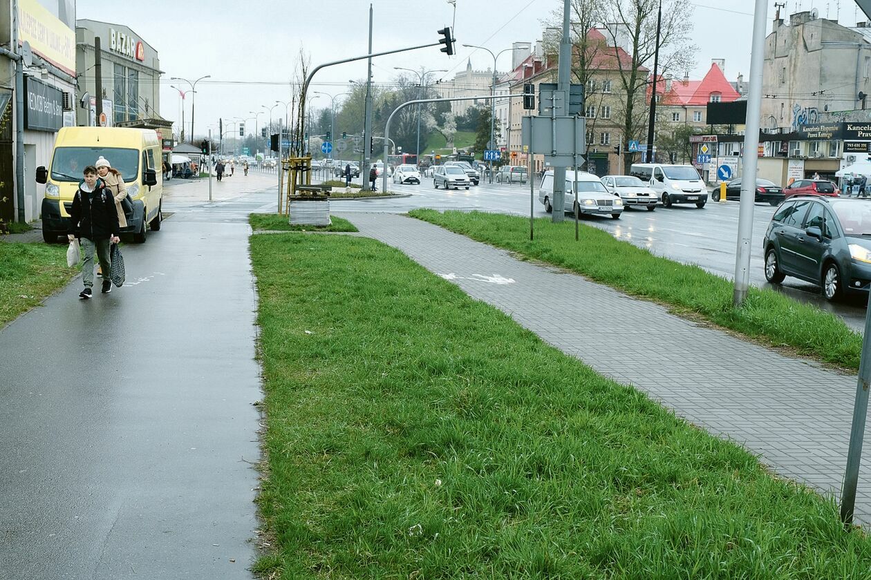 • Nie do poznania ma się zmienić niepozorny teren u zbiegu ul. Zana i Jana Sawy. Chodzi o nieduży trawnik naprzeciw sklepu Rossmann, niedaleko przystanku komunikacji miejskiej. Dziś jest tu trochę trawy i ławka, a będzie z tego skwerek.