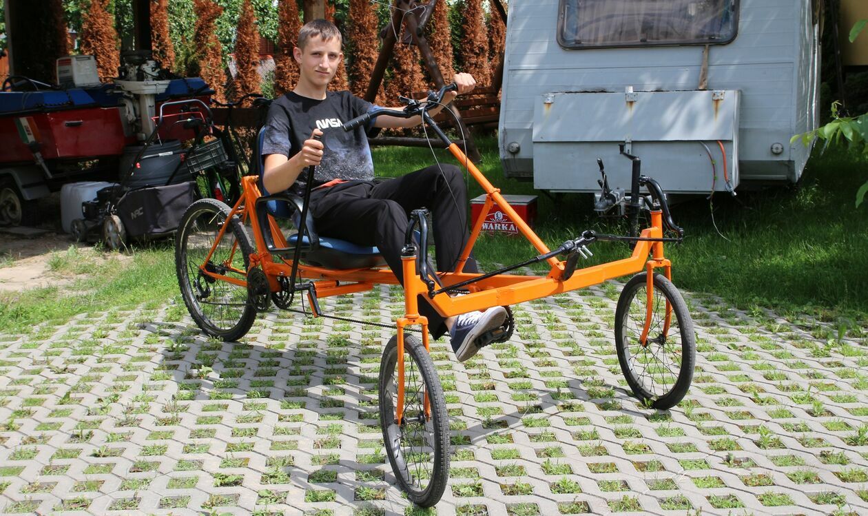 - Marzyło mi się w zimie, żeby mieć taki rower, którym dałoby się trochę pokręcić, pojeździć bokiem. Dwa koła z przodu dodają mu stabilności. Gdy wymyśliłem, jak to ma wyglądać, narysowałem wszystko i poprosiłem o pomoc tatę. Zaczęliśmy od spawania ramy, potem doszło sterowanie, parę rzeczy się dokupiło, zmontowało no i jest - opowiada Kuba Gawriołek.