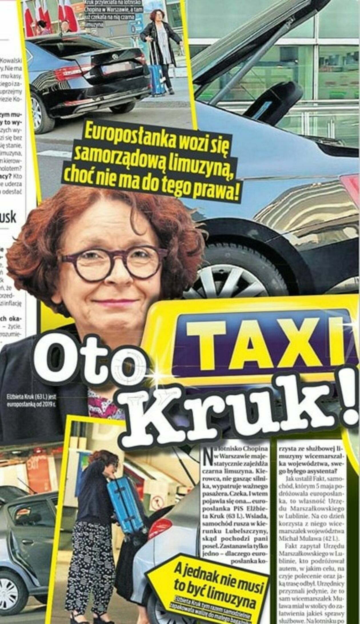 Sytuację, która miała miejsce 5 maja, opisał „Fakt”. Na zdjęciach widać wracającą do kraju Elżbietę Kruk. Pod terminalem czeka na nią czarna limuzyna. Kierowca wysiada i pakuje jej niebieską walizkę do bagażnika.