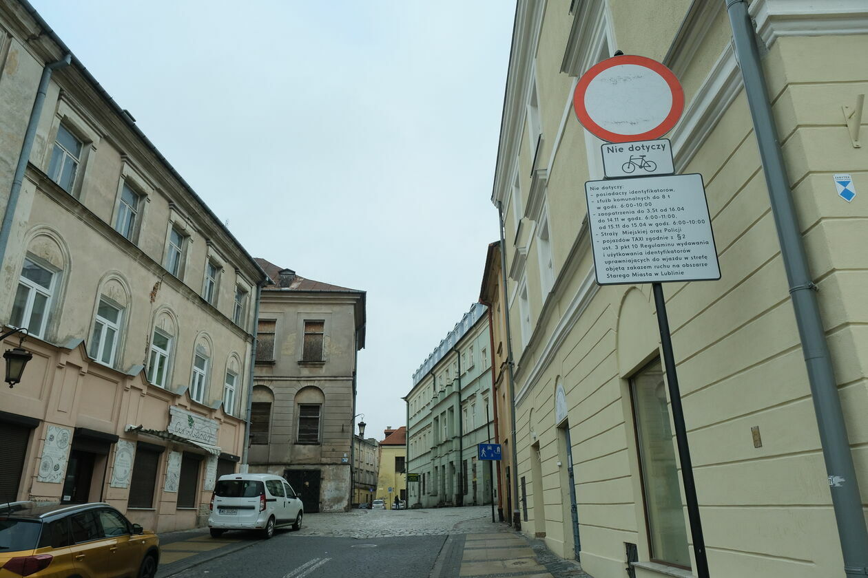 Zgodnie z zarządzeniem prezydenta Lublina z 2020 roku, na Stare Miasto autami mogą wjeżdżać wyłącznie ci kierowcy, którzy mają stosowny identyfikator. To pozwolenie wydawane na określony czas: mieszkańcom (maksymalnie dwa na jeden lokal), instytucjom i firmom, które prowadzą tam działalność (po jedno na podmiot, ważne wyłącznie w godzinach prowadzenia działalności), organizatorom imprez oraz wydarzeń masowych, kulturalnych i sportowych, osobom prowadzącym roboty budowlane lub remontowe oraz nowożeńcom (maksymalnie dwa). Wyjątek stanowią jedynie służby, jak policja czy straż pożarna. Wcześniej ograniczono możliwości wjazdu taksówkom, które mogą przewozić niepełnosprawnych i osoby starsze, ale nie mają już prawa do postoju.