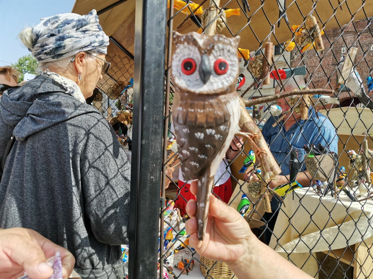 Państwo Lucyna i Marek przyjechali na Festiwal Re:tradycja – Jarmark Jagielloński ze Szczecina. Byli na poprzedniej edycji, jeszcze przed pandemią, bardzo im się podobało, wrócili. – Lubimy takie nietuzinkowe rzeczy, rękodzieło. Wtedy przywieźliśmy do domu kapliczkę i sporo innych rzeczy. Sowa jest naszym pierwszym zakupem. Oj, nawet nie przyszło nam do głowy, żeby się targować – mówią goście z drugiego końca Polski. Sowa kupiona za 60 złotych na stoisku Anny i Rajmunda Kicmanów zamieszka w wiatrołapie.