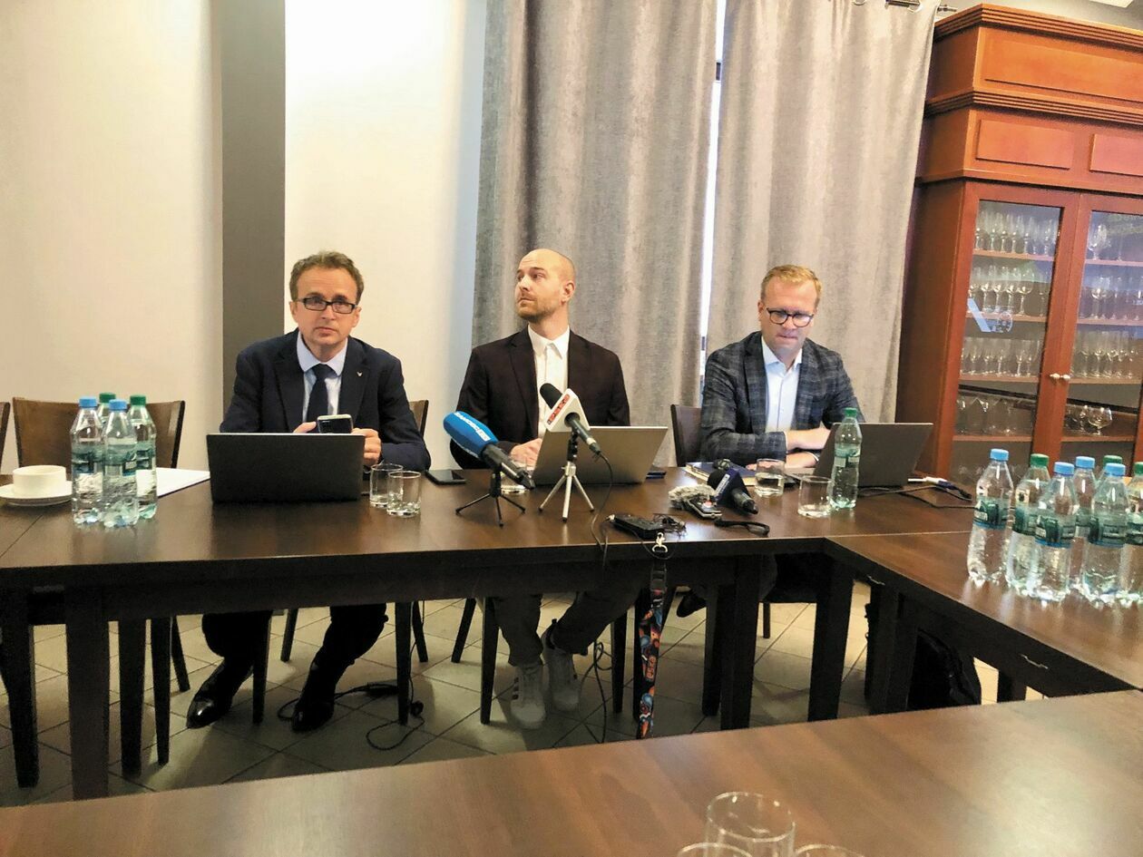 We wtorek w Zamościu spółka CPK zorganizowała „śniadanie prasowe” dla mediów. Odbyło się w jednym z hoteli na Starym Mieście. Na dziennikarzy czekał poczęstunek (ale chyba nikt nie był głodny, bo wszystko co stało na stołach, pozostało nietknięte) oraz Bartosz Guszczak i Adam Nalewajko, koordynatorzy projektu CPK Trawniki - Bełżec, a także Konrad Majszyk, rzecznik prasowy spółki CPK.