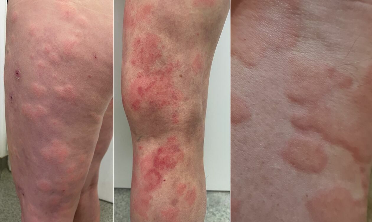– Zmiana skórna bardzo swędzi i piecze pacjenta. Ma postać bąbla pokrzywkowego, który jest często koloru czerwonego, czasami może być porcelanowo-biały, bądź różowy. Skóra w tym miejscu jest obrzęknięta – wskazuje prof. Bartosińska.
