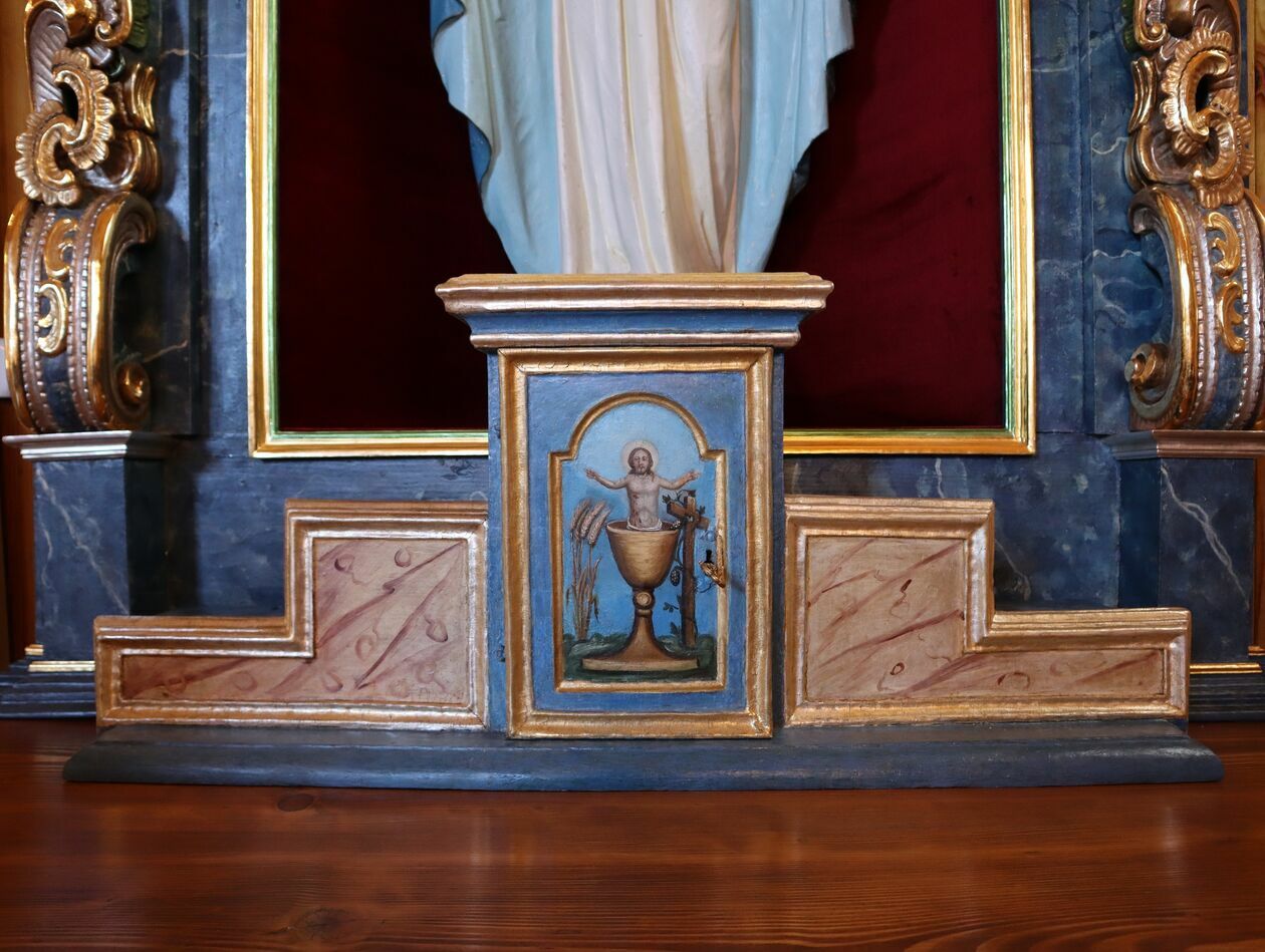 – Ołtarzowi przywrócono pierwotną kolorystykę – błękitna marmoryzacja, bardzo zbliżona do kolorystyki konserwowanego w zeszłym roku ołtarza lewego, przytęczowego. W dużym stopniu zachowano pierwotne złocenia i srebrzenia, które poddano konserwacji, zrekonstruowano laserunki na srebrzeniach oraz przywrócono pierwotną lokalizację elementów snycerskich – wylicza Dariusz Kopciowski, wojewódzki konserwator zabytków.