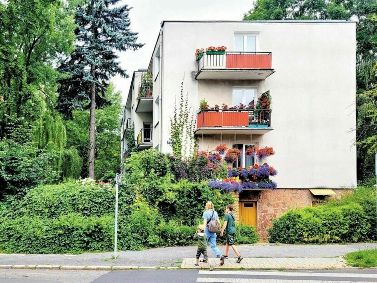 – Kiedy się tutaj wprowadziliśmy, pierwsze trzy bloki były zaprojektowane w ten sposób, że każdy z nich mógł mieć ogródek. Od samego początku sadziliśmy w naszym ogrodzie kwiaty i krzewy ozdobne, które kwitły od wczesnej wiosny do późnej jesieni. Zarówno wtedy, jak i teraz, znaleźć tu można kwiaty – przebiśniegi, tulipany, narcyze, astry, aksamitki, floksy, cynie oraz krzewy – róże (około 50 sztuk), rododendrony, azalie, wawrzyńce, powojniki różnego rodzaju, hortensje i milin amerykański.