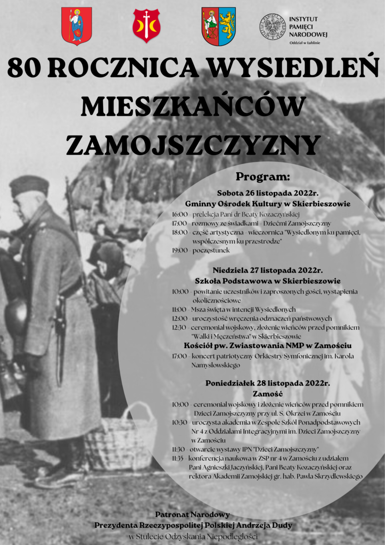 W niedzielę uroczystości mają się odbywać w skierbieszowskiej szkole (od godz. 10). Planowana jest msza św., wręczenie odznaczeń państwowych, a następnie złożenie wieńców pod pomnikiem „Walki i Męczeństwa” w Skierbieszowie. Zaś wieczorem, już w Zamościu w kościele Franciszkanów z patriotycznym koncertem wystąpi (godz. 17) Orkiestra Symfoniczna im. Karola Namysłowskiego.