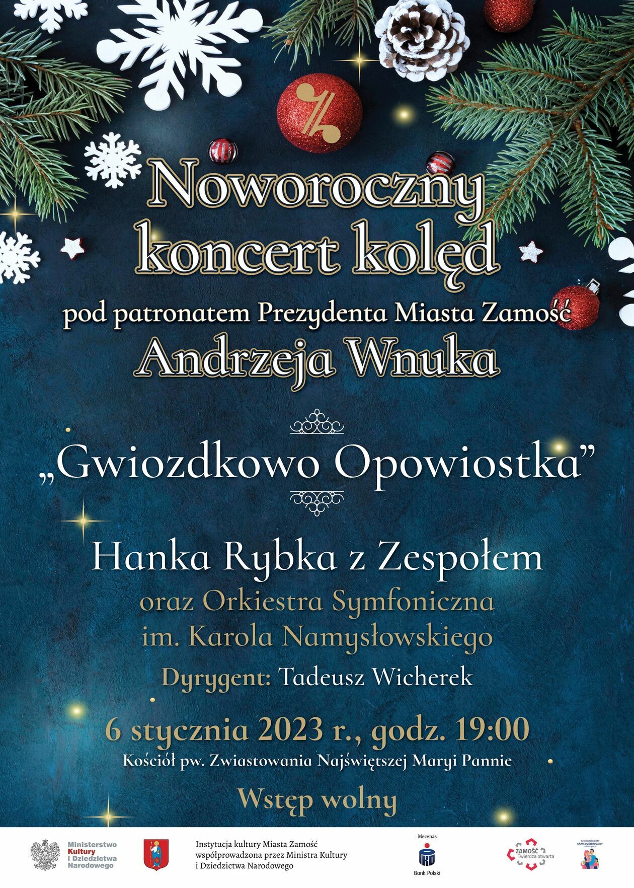 Wydarzenie planowane jest na godzinę 19 w kościele Ojców Franciszkanów pw. Zwiastowania Najświętszej Maryi Pannie na zamojskim Starym Mieście. Podczas koncertu wystąpi wraz ze swoim zespołem Hanka Rybka. Artystom z Podhala towarzyszyć będą muzycy Orkiestry Symfonicznej im. Karola Namysłowskiego w Zamościu pod batutą Tadeusza Wicherka.