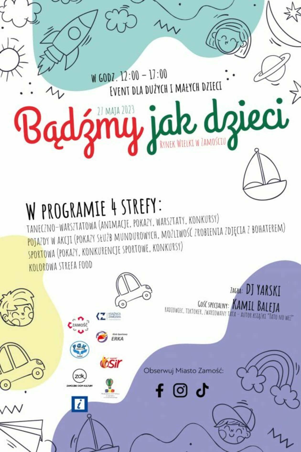Na ten jeden dzień centrum Zamościa zamieni się w wielki plac zabaw podzielony na cztery strefy: taneczno-warsztatową, pojazdów, sportową i kolorową street food. Atrakcji w każdej będzie mnóstwo. W programie animacje, gry, konkursy, pokazy i zawody.