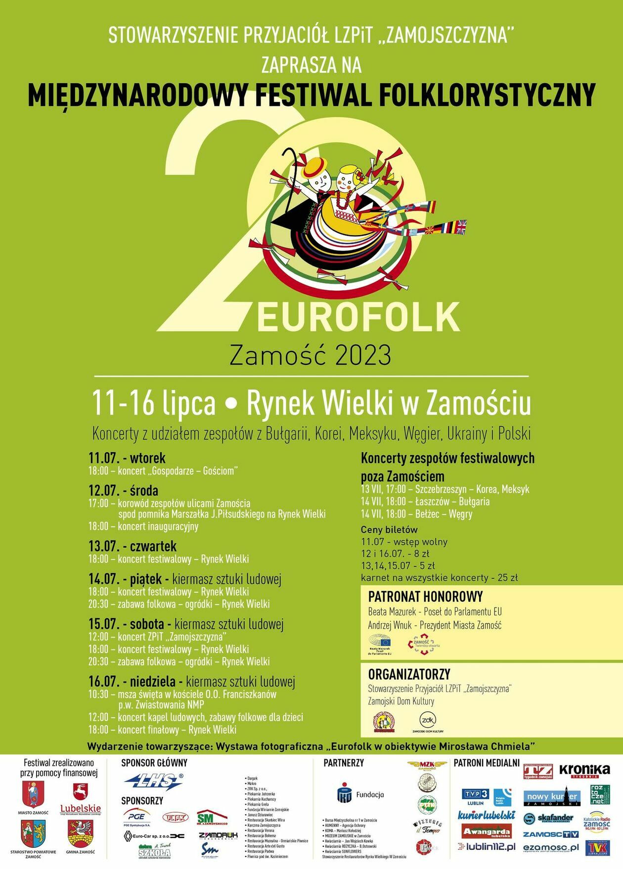 Ta impreza organizowana przez Zamojski Dom Kultury oraz działający przy nim Zespół Pieśni i Tańca Zamojszczyzna odbędzie się już po raz 20. Tradycyjnie ma się rozpocząć koncertem „Gospodarze – Gościom”, który we wtorek (godz. 18) odbędzie się na Rynku Wielkim.