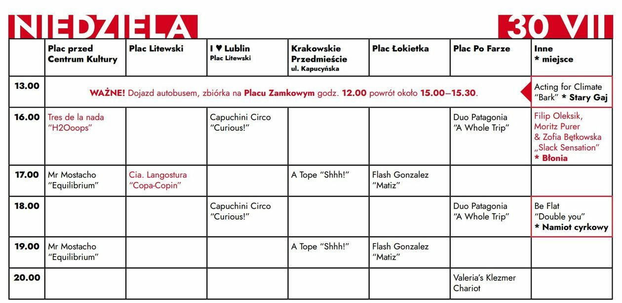 Program na niedzielę (30 lipca), ostatni dzień imprezy