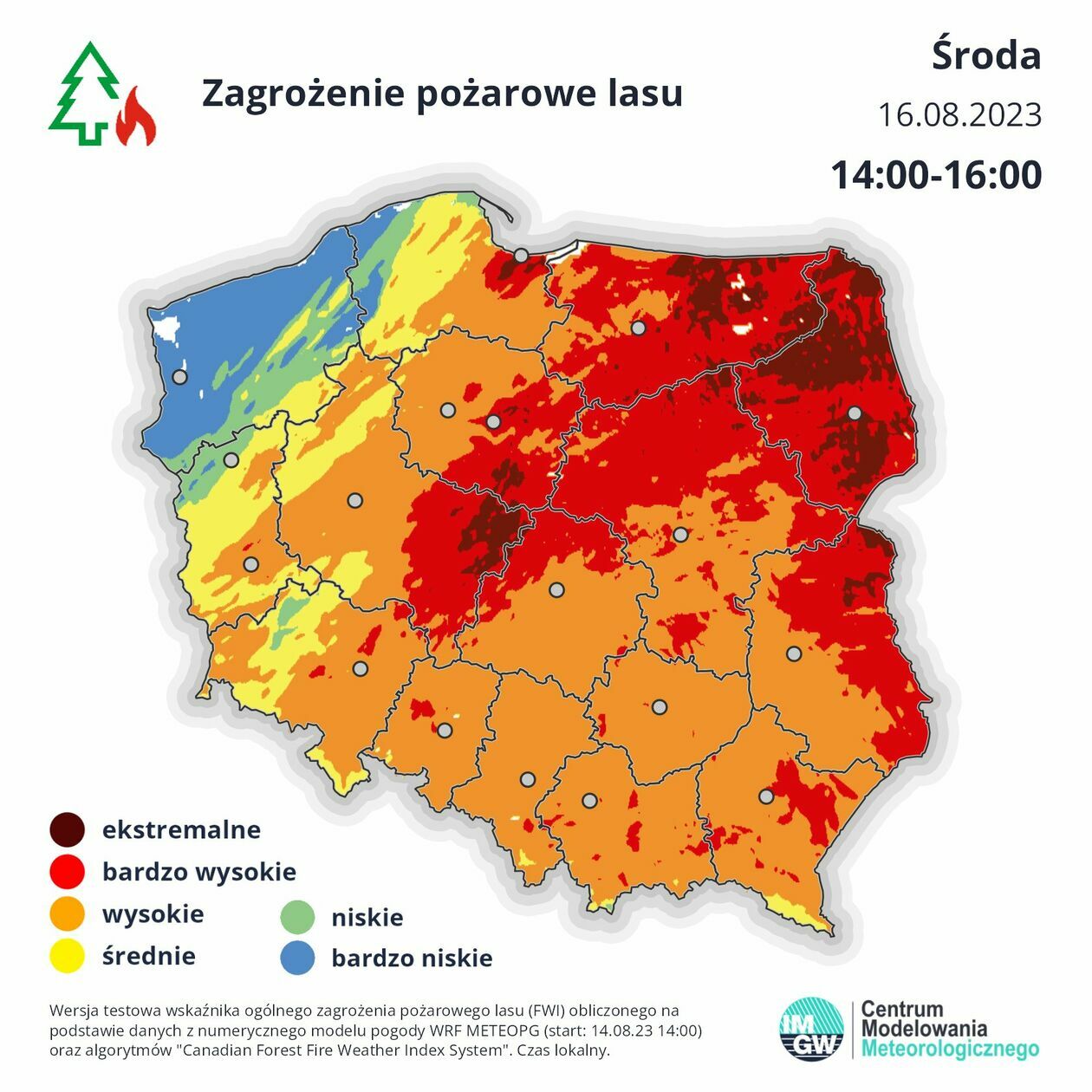 Przez najbliższe dni upały nie ustąpią. W naszym regionie spodziewana temp. to 30 - 34 °C. Z uwagi na wysokie temperatury i brak deszczu szybko wzrasta zagrożenie pożarowe w lasach. Według prognozy na jutro na wschodzie oraz w centrum kraju zagrożenie pożarowe będzie bardzo, a miejscami nawet ekstremalnie, wysokie.