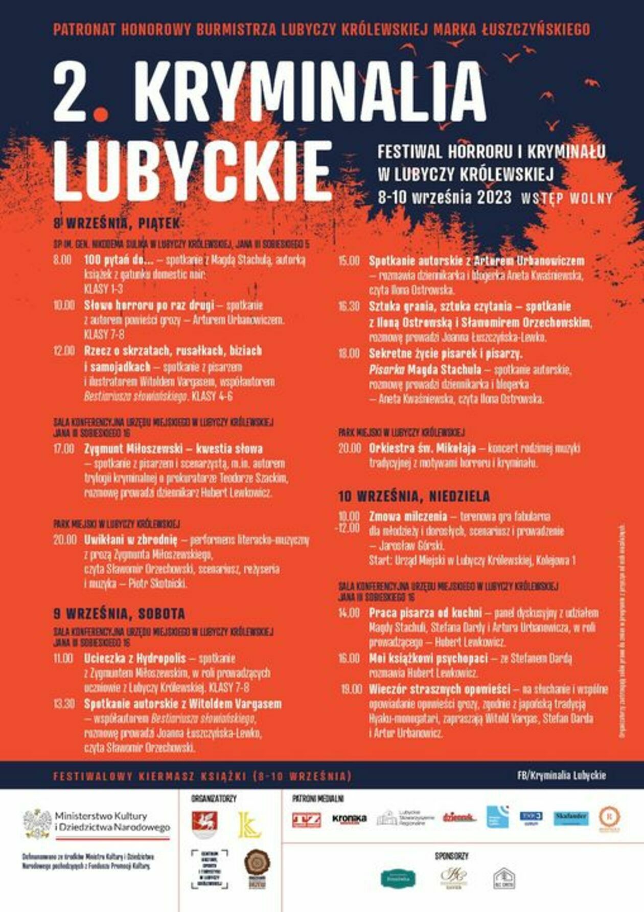 Ta impreza to przede wszystkim spotkania z mistrzami literatury kryminalnej i grozy, ale również koncert, gra terenowa oraz oczywiście festiwalowy kiermasz książki.