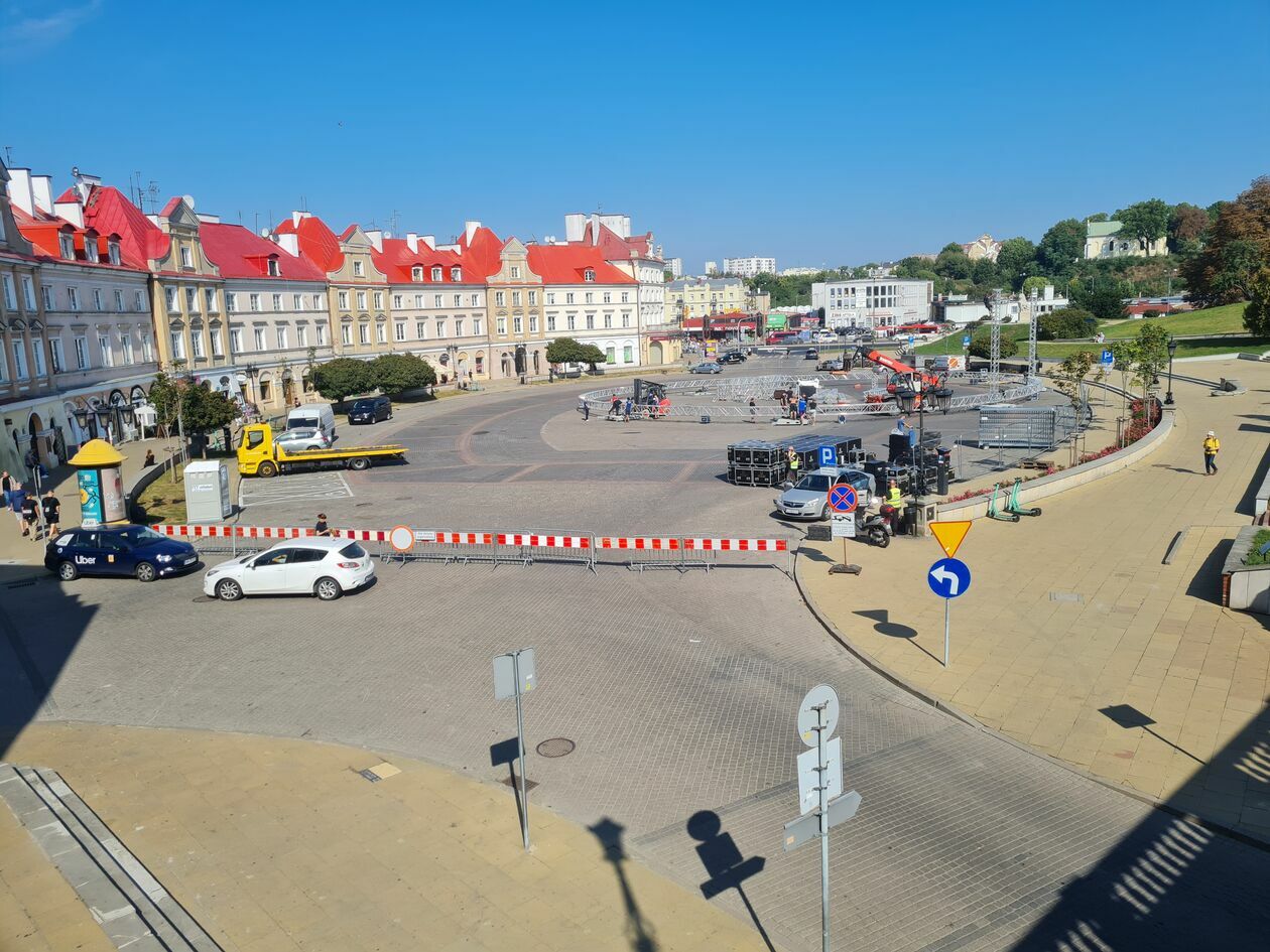 Barierki uniemożliwiające wjazd pod Zamek pojawiły się w sobotę, w związku z przygotowaniami do niedzielnego pikniku organizowanego przez Zarząd Transportu Miejskiego w Lublinie. Po weekendzie nie zniknęły, a w poniedziałek rano w tym miejscu pojawiły się ciężarówki z metalowymi elementami. To z nich składane jest koszykarskie boisko i trybuny, które pomieszczą tysiąc osób.