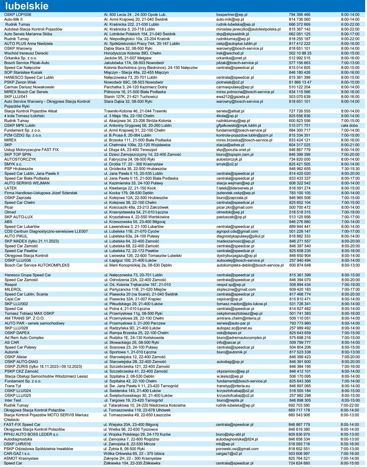 Wykaz stacji kontroli pojazdów w województwie lubelskim, które biorą udział w kampanii