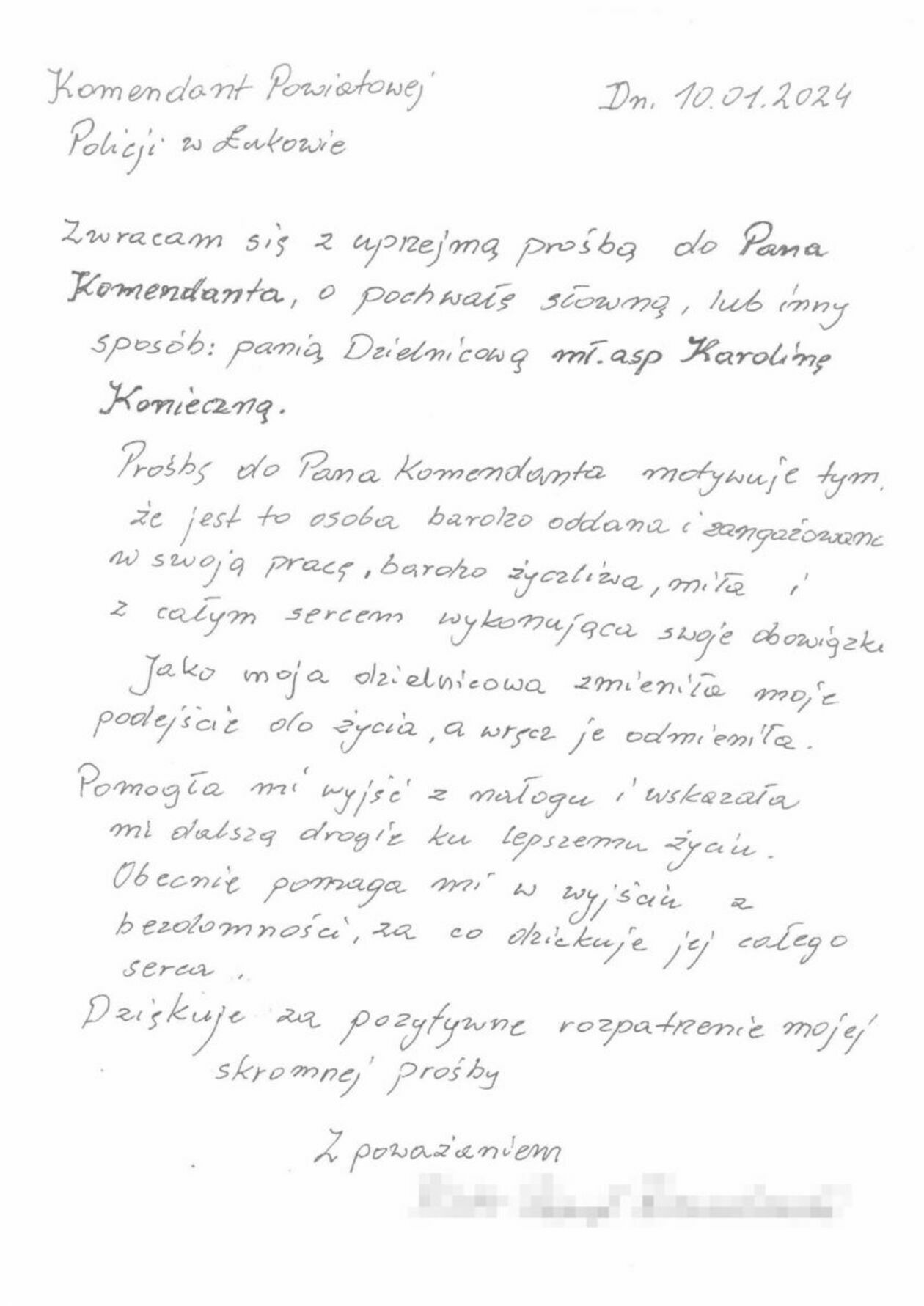 48–latek napisał do policjantki list z podziękowaniami. Przyznał w nim, że dzielnicowa zmieniła jego podejście do życia i wskazała mu dalszą drogę ku lepszemu życiu.