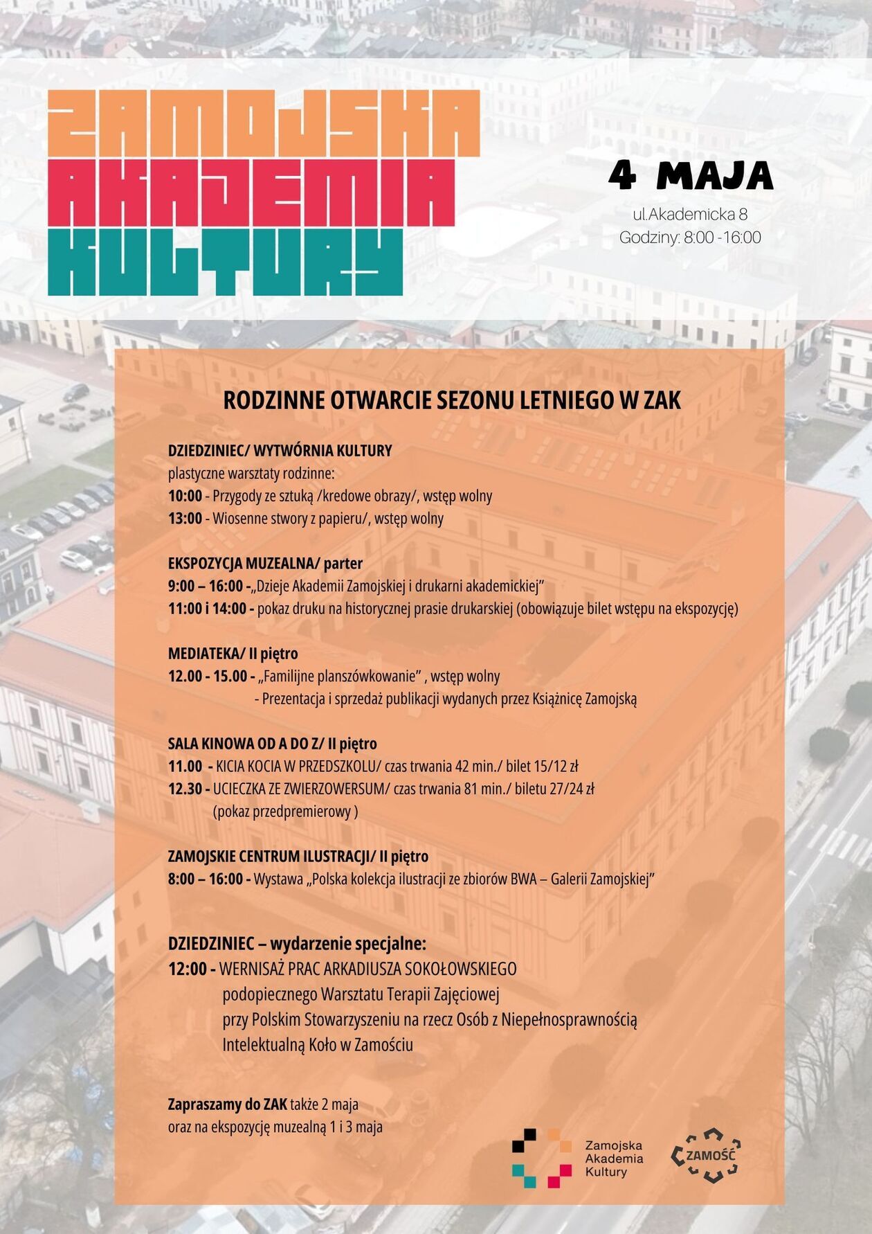 Od rana do popołudnia jest otwarta 4 maja Zamojska Akademia Kultury mieszcząca się w gmachu dawnej Akademii Zamojskiej. Na dziś zaplanowano tutaj mnóstwo atrakcji dla dużych i małych gości. Bo to ma być rodzinne otwarcie sezonu letniego