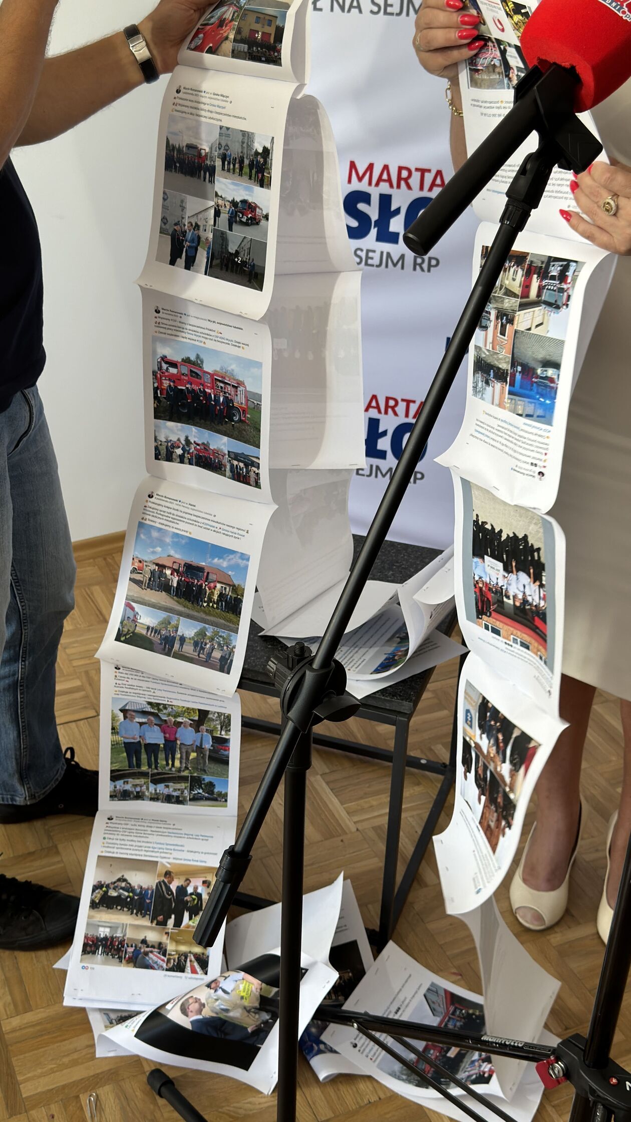 Marta Wcisło pokazała wydruki kilkudziesięciu wpisów z mediów społecznościowych wiceministra Romanowskiego, na których pozuje on wraz ze strażakami z OSP i wręczonymi im czekami. Jak twierdzi, wiceminister Romanowski ostatniego dnia kampanii wyborczej przed październikowymi wyborami, rozdawał czeki w swoim okręgu wyborczym, „już po zmroku, kiedy ciemno było”, tak aby zdążyć przed ciszą wyborczą.