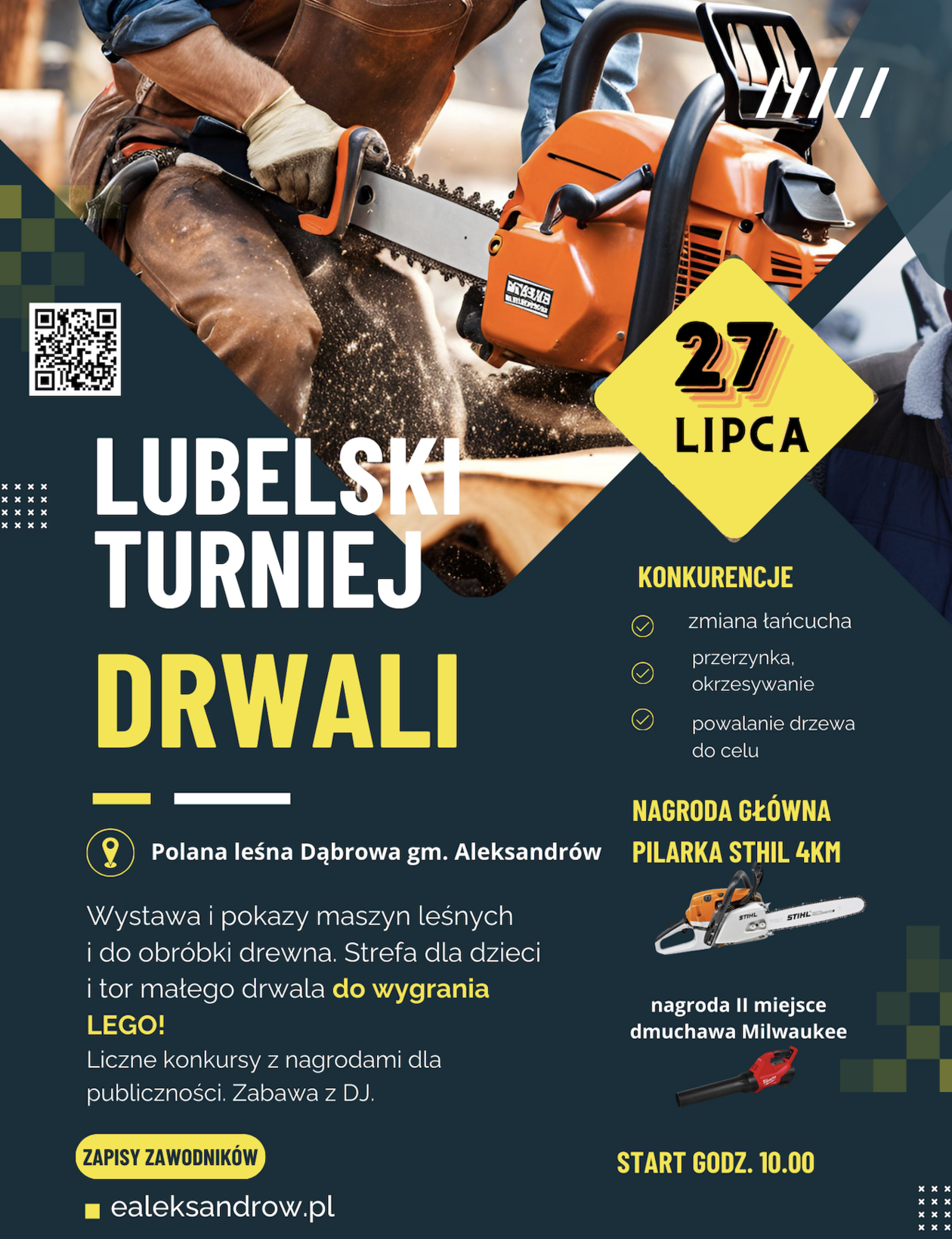 Lubelski Turniej Drwali współorganizowany przez gminę Aleksandrów ma się rozpocząć o godzinie 10. W programie rywalizacja z nagrodami, które wygrać będzie można np. w powalaniu drzew, jak najszybszym zmienianiu łańcucha w pile czy przerzynce.