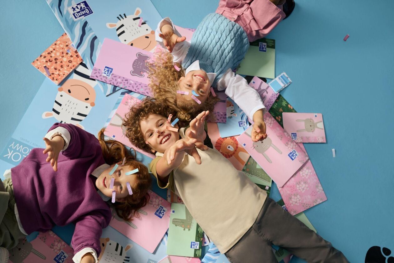 Błędem jest również zakup zeszytów w zwykłą linię. Najwygodniejsza dla najmłodszych jest linia podwójna albo kratka. Dobrym wyborem dla dzieci są zeszyty z kolekcji Oxford Kids wyposażone w miękką, lekką i aksamitną okładkę. Składają się z papieru Optik Paper, który ułatwia prowadzenie długopisu i nie męczy rąk, co jest kluczowe na etapie nauki pisania. Wysoka grubość papieru sprawia, że strony nie przebijają tuszu, ani nie dziurawią się od zbyt mocnego naciskania ołówkiem. Z kolei śnieżna biel stron ułatwia czytanie notatek i nie męczy oczu dzieci, co pozwala im na dłuższe szlifowanie nauki pisania.