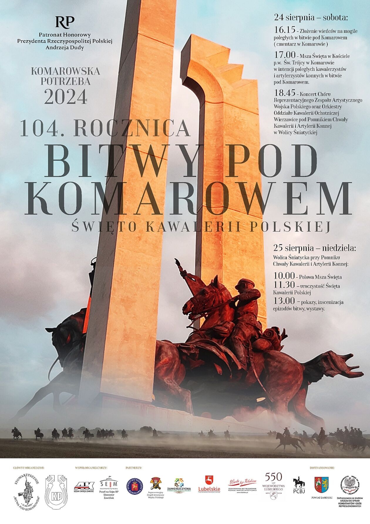 Całe przedsięwzięcie związane ze 104 rocznicą zwycięskiej bitwy polskiej kawalerii nad Rosjanami z 31 sierpnia 1920 roku dofinansowane zostało ze środków Urzędu do Spraw Kombatantów i Osób Represjonowanych, a także budżetu powiatu zamojskiego.
