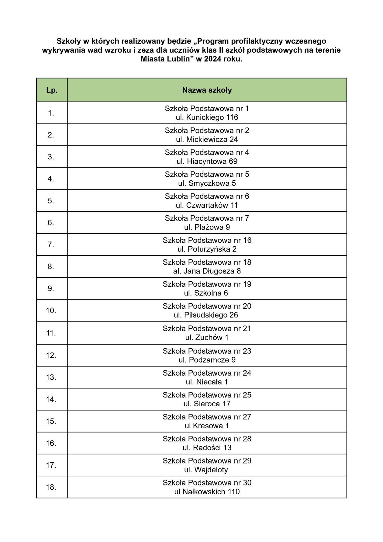 – Program będzie realizowany w gabinetach profilaktyki zdrowotnej zlokalizowanych na terenie lubelskich szkół przez pielęgniarki szkolne. Aby dziecko mogło w nim uczestniczyć, konieczna jest pisemna zgoda rodzica lub opiekuna. Dodatkowo zaplanowane w programie działania zakładają również poszerzenie wiedzy rodziców i opiekunów oraz kadry pedagogicznej na temat profilaktyki, wczesnego wykrywania oraz procesu leczenia wad wzroku u najmłodszych – przekazuje Anna Czerwonka z miejskiego Ratusza. – Do tej pory przebadano ponad 13 tys. lubelskich uczniów. Na realizację programu w 2024 roku Miasto przeznaczyło środki w wysokości 110 tys. zł – dodaje.