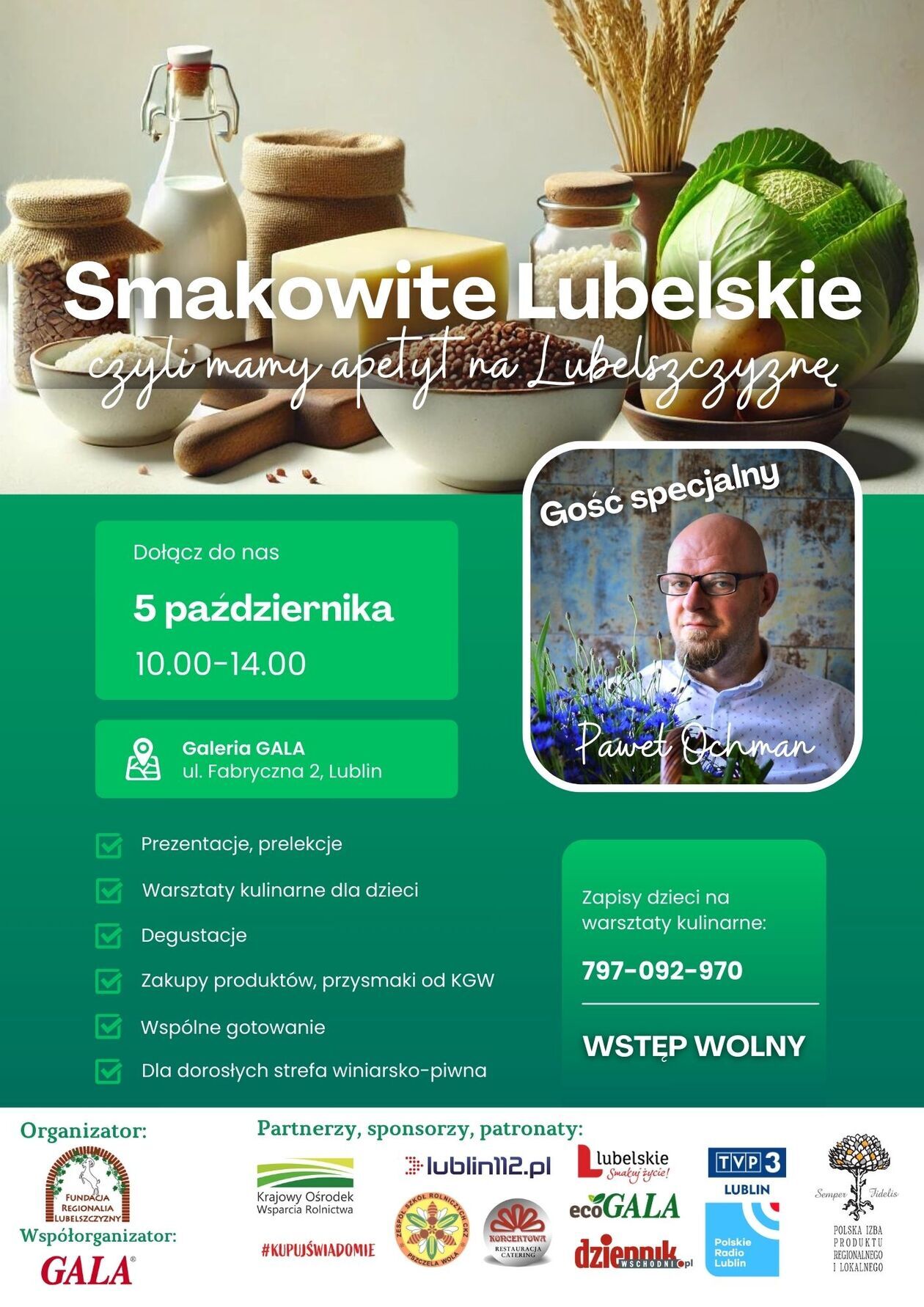 Na uczestników czeka masa atrakcji, m.in. spotkanie z Pawłem Ochmanem – promotorem kuchni wegańskiej, regionalnej oraz kresowej, prezentacja produktów prosto od lokalnych producentów, warsztaty kulinarne dla dzieci oraz wiele innych.
