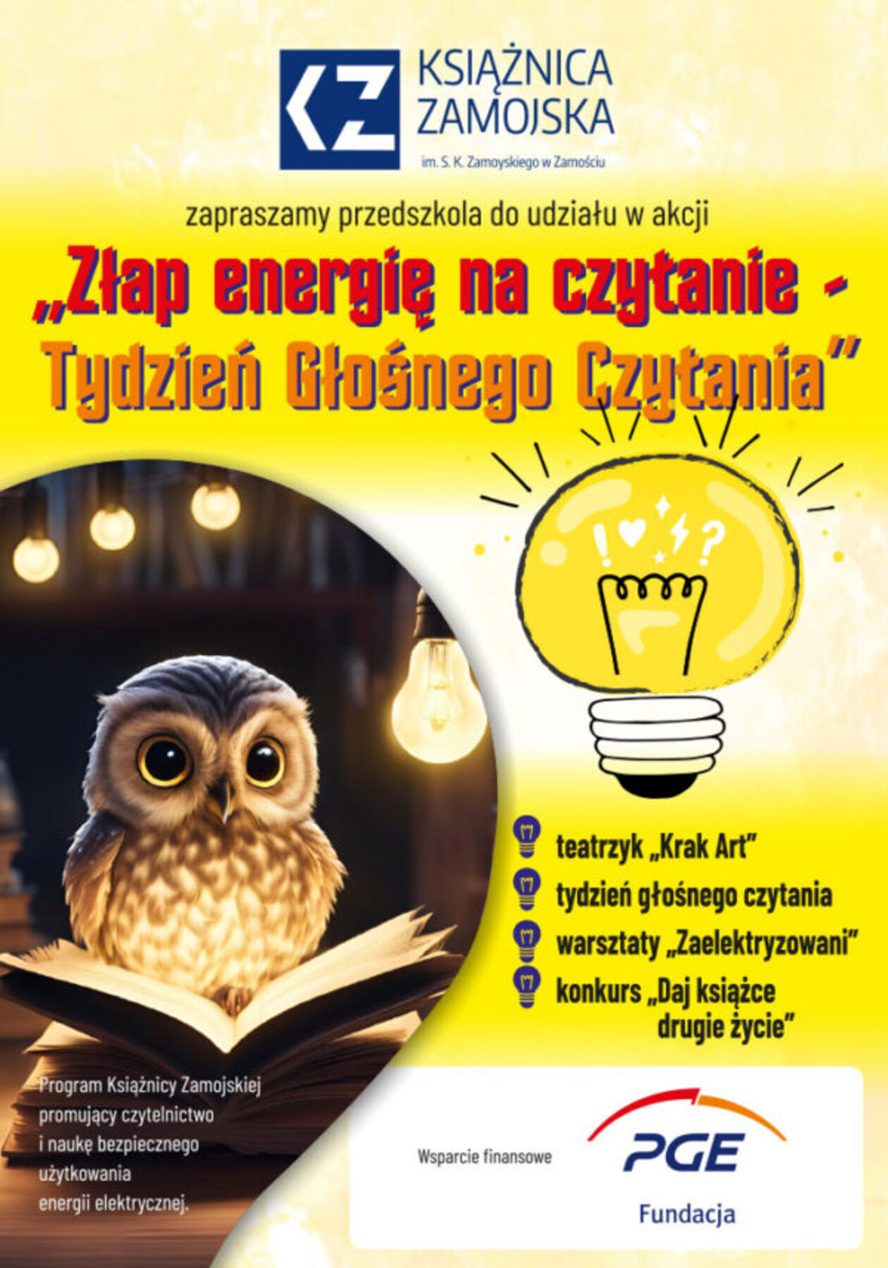 Jak nietrudno się domyślić, chodzi o rozbudzanie zainteresowań czytelniczych i popularyzację czytelnictwa wśród dzieci, ale też przy okazji edukację na temat bezpiecznego postępowania z energią elektryczną. Adresaci przedsięwzięcia to dzieci 5-6-letnie z zamojskich przedszkoli.