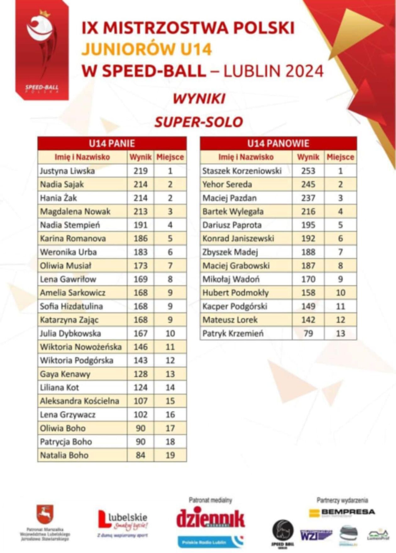Partnerem zawodów było Województwo Lubelskie, a Dziennik Wschodni był jednym z patronów medialnych mistrzostw.