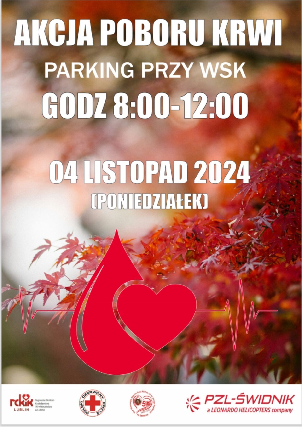 Kolejna akcja poboru krwi, organizowana przez Klub HDK-PCK im. Bł. Ks. Jerzego Popiełuszki przy PZL – Świdnik odbędzie się w najbliższy poniedziałek, 4 listopada. Ambulans będzie dostępny na parkingu przy PZL Świdnik w godz. 8- 12.