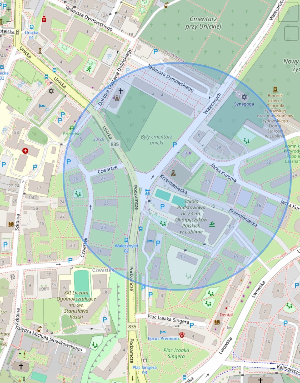 - ul. Lwowska 6, 8, 10, 14, 16, 18, 20, 22, 24, 26;