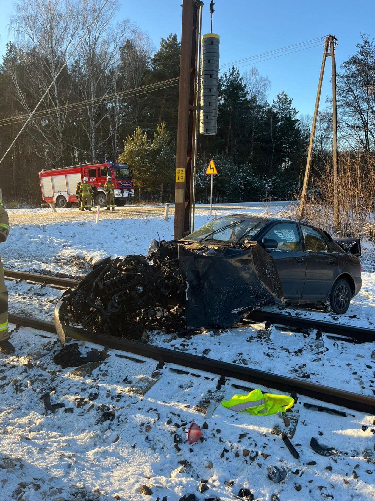 Do zdarzenia doszło przed godziną 14 w sobotę (4 stycznia) w miejscowości Okrzeja w powiecie łukowskim. Na niestrzeżonym przejeździe kolejowym zderzyły się drezyna kolejowa z samochodem osobowym.