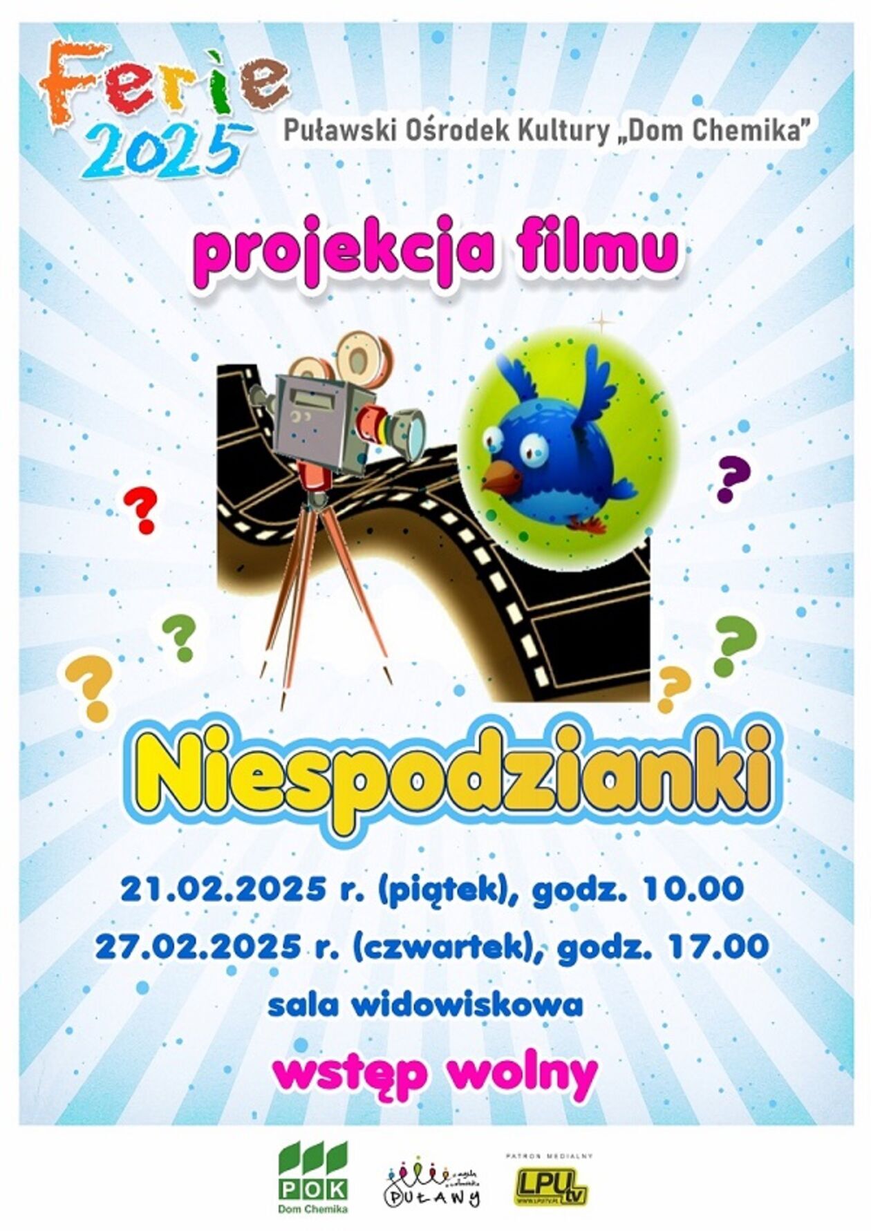 W ofercie znajduje się również spektakl dla dzieci "Podróż za horyzont", spektakl parateatralny „W świecie Mimów”, koncert Mileny Kowalczyk oraz filmowe niespodzianki. POK nie zapomniał także o dorosłych, których zaprasza m.in. na koncert zespołu DHM, warsztaty z tańca na szpilkach oraz występy znanych komików - Daniela Midasa oraz Igora Kwiatkowskiego.