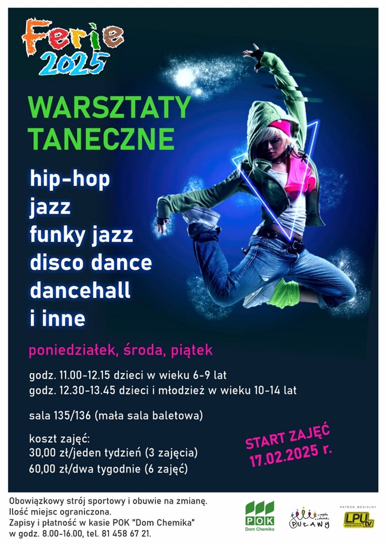 Zapisy na zajęcia w kasie Domu Chemika pod numerem tel. 81 458 67 21.