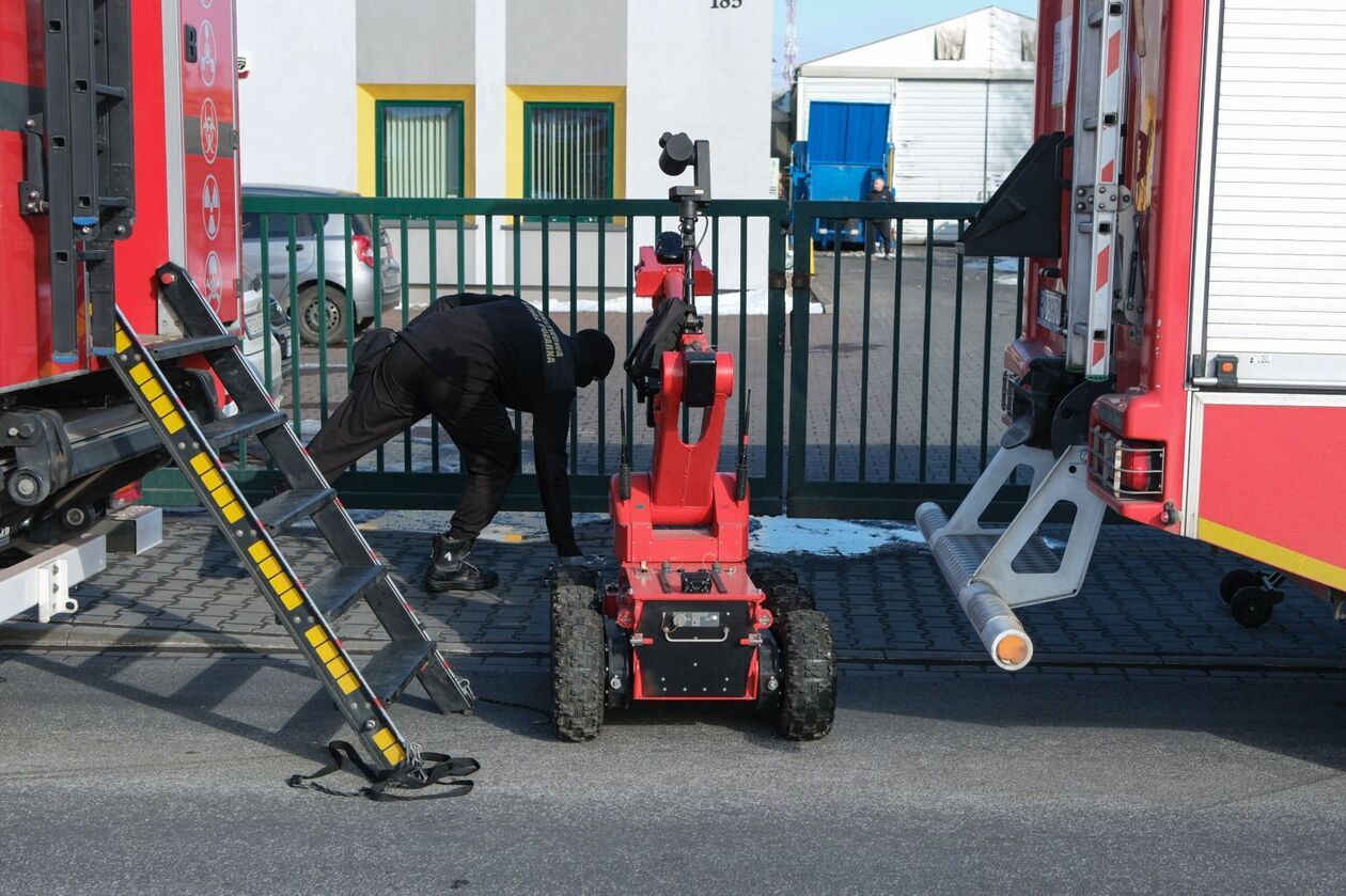 Oficer prasowy poznańskiej policji podkom. Łukasz Paterski poinformował PAP, że około godz. 9.20 funkcjonariusze dostali informację, iż pracownicy jednej z firm w podpoznańskich Komornikach odkryli na terenie przedsiębiorstwa bliżej niezidentyfikowany przedmiot przypominający zbiornik. Policjanci wezwali na miejsce m.in. funkcjonariuszy z grupy rozpoznania minersko-pirotechnicznego oraz grupę ratownictwa chemiczno-ekologicznego. W związku z tym zdarzeniem nikt nie ucierpiał.