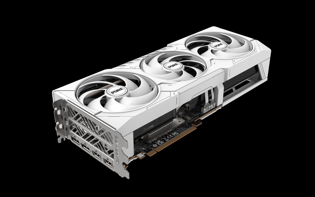 Seria Pure w przypadku RX 9070/XT kusi białym kolorem. Układ graficzny modelu RX 9070 XT pracuje z taktowaniem Boost na poziomie 3010 MHz oraz 2460 MHz w trybie Game przy Typical Board Power na poziomie 317 W. Parametry modelu PURE RX 9070 to odpowiednio 2700 MHz, 2210 MHz i 245 W.