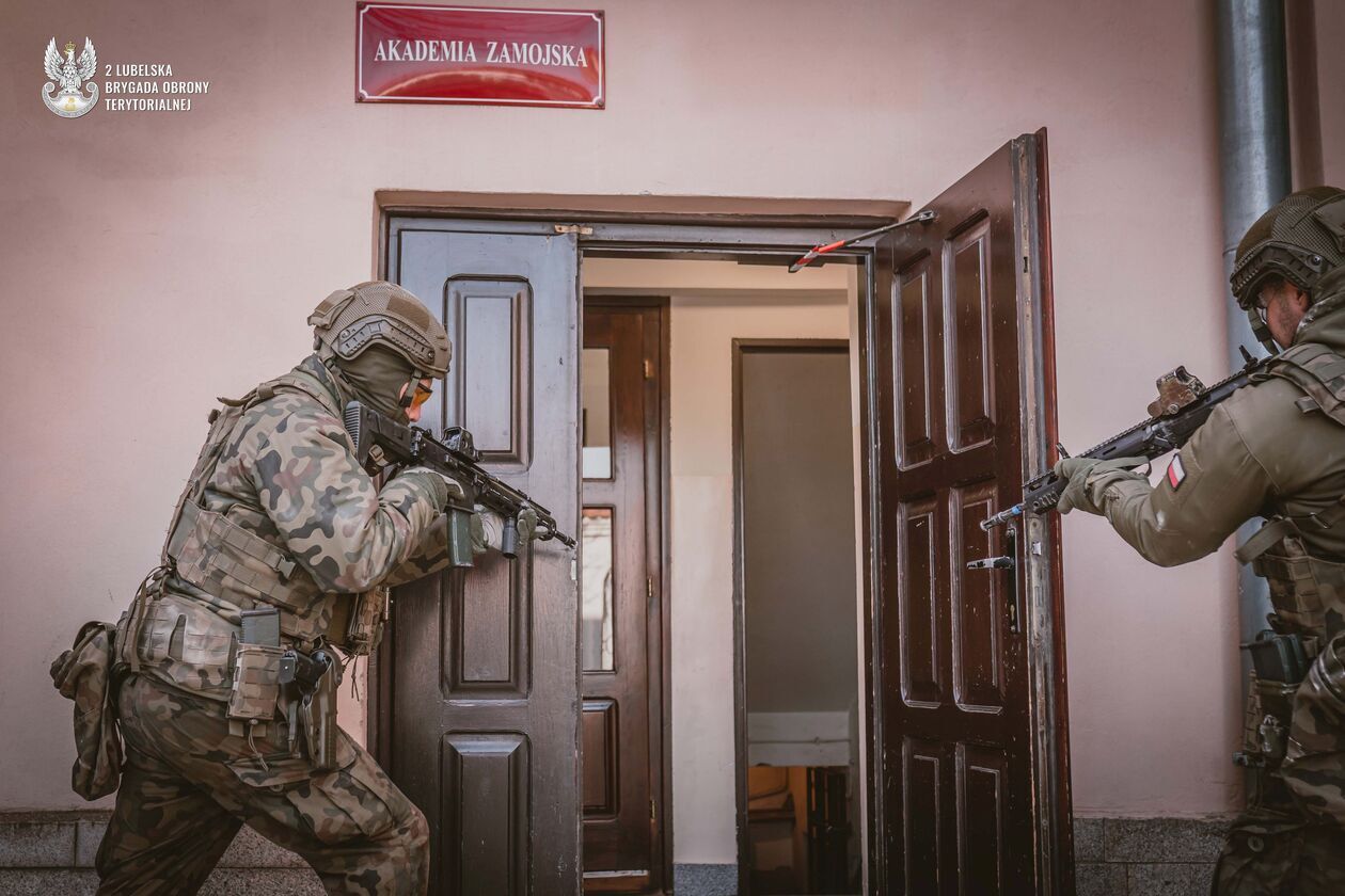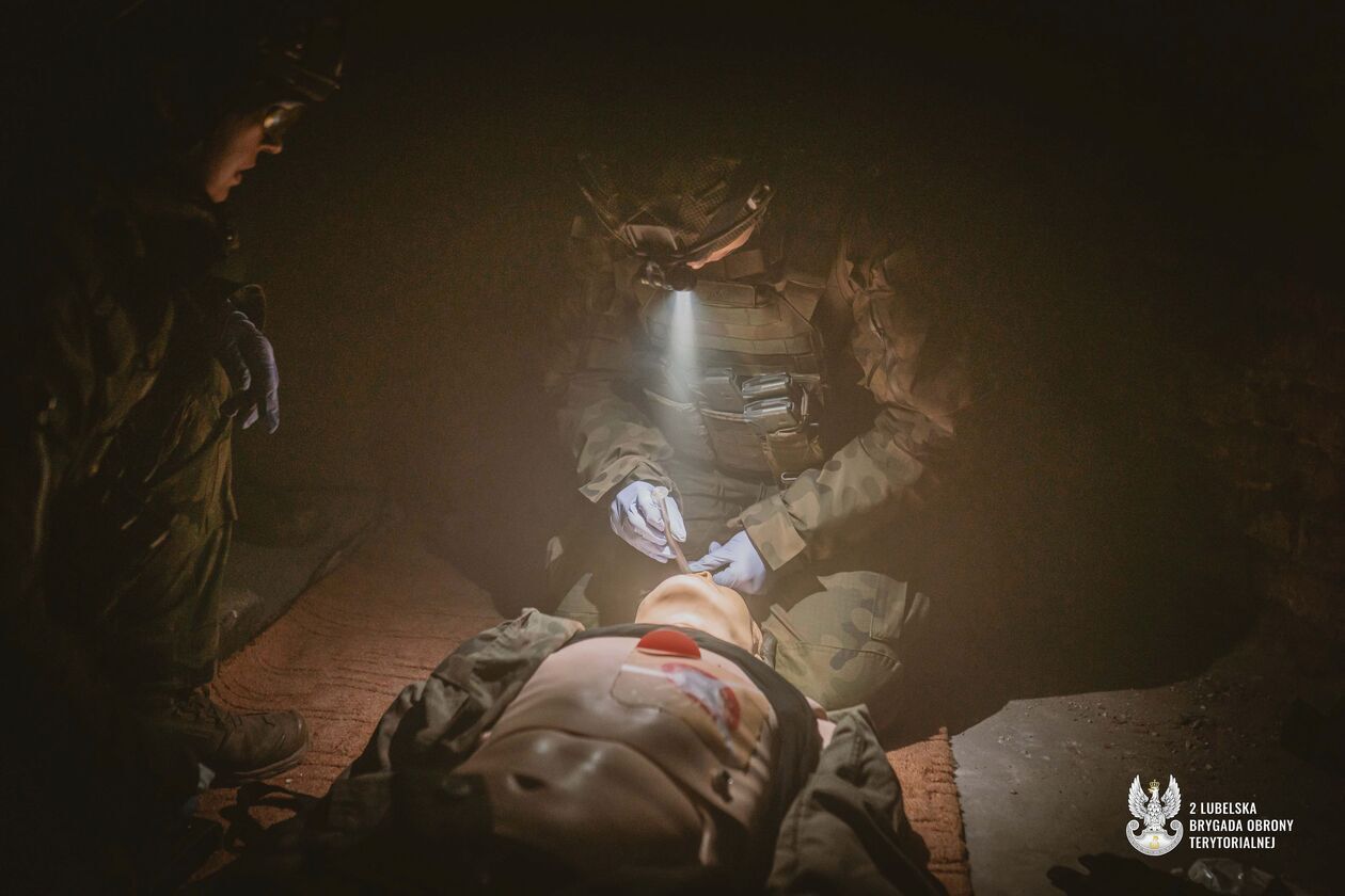 Żołnierze 25 Zamojskiego Batalionu Lekkiej Piechoty doskonalili swoje umiejętności w zakresie medycyny taktycznej podczas intensywnych ćwiczeń w Wieloprofilowym Centrum Symulacji Medycznych Akademii Zamojskiej oraz w podziemiach gmachu rektoratu uczelni.