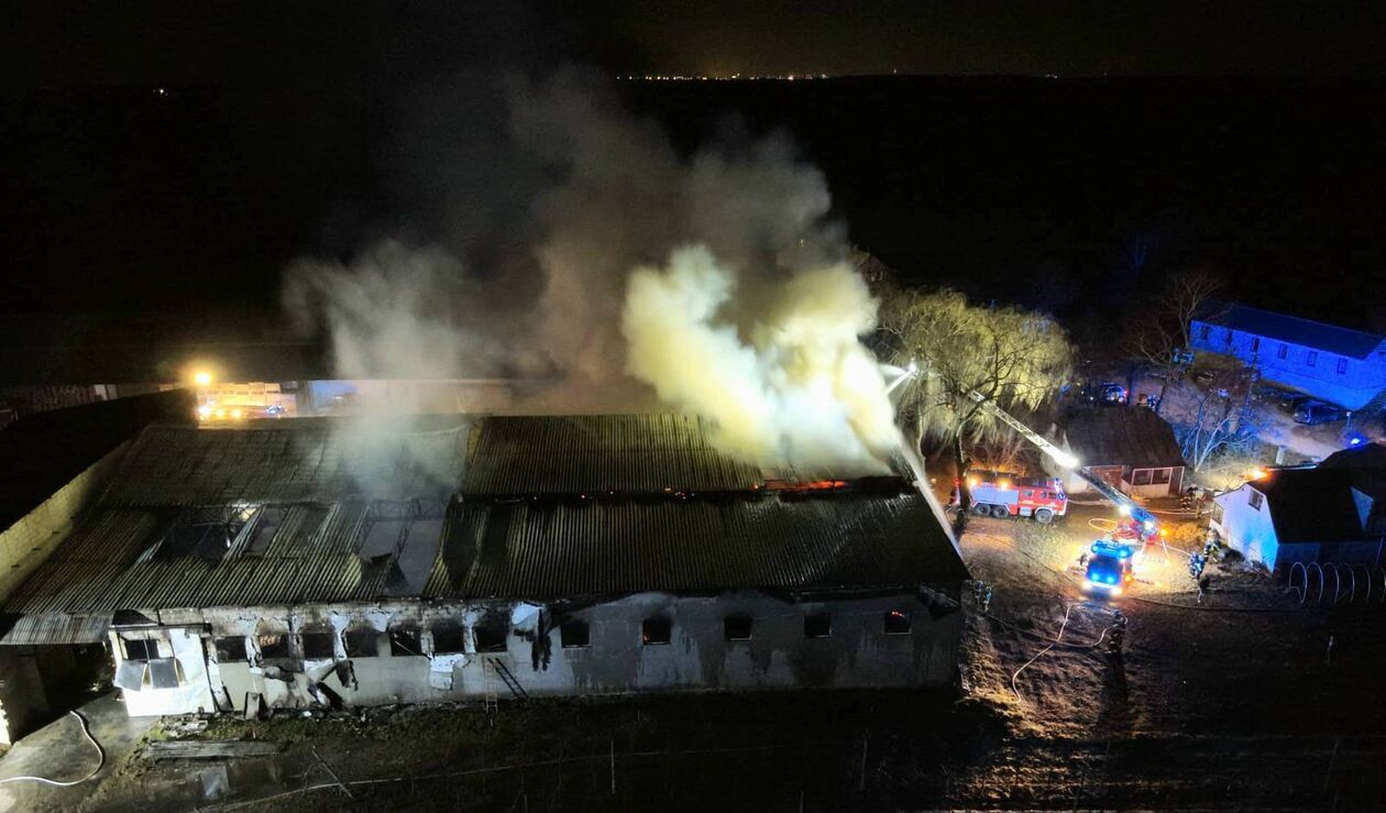 Strażacy dostali zgłoszenie po godz. 19 w środę. Pożarem objęta była ogromna hala magazynowa (50 na 20 metrów) ze zbożem, nawozami i sprzętem rolniczym. W sumie przez całą noc z żywiołem walczyło 21 zastępów straży, zarówno PSP jak i OSP.
