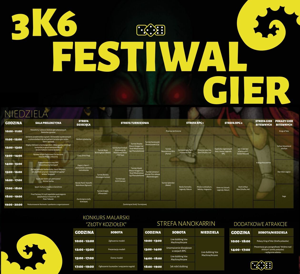 Będą turnieje i sesje RPG: Neuroshima Blitz, Brass Birmingham, Dark ands Blue, Slpendor czy Zew Cthulu,