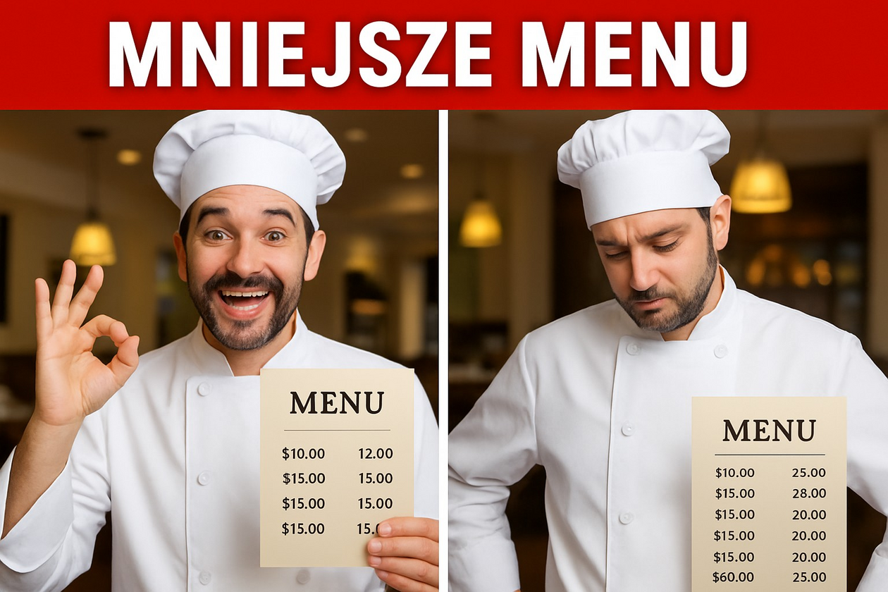 Przyglądałam się ostatnio nowemu bistro na Mokotowie. Mieli 32 pozycje w karcie, a po miesiącu zostało 18. Food cost spadł z 38% do 29%. Zgadnij, co się zmieniło w ich wynikach finansowych?