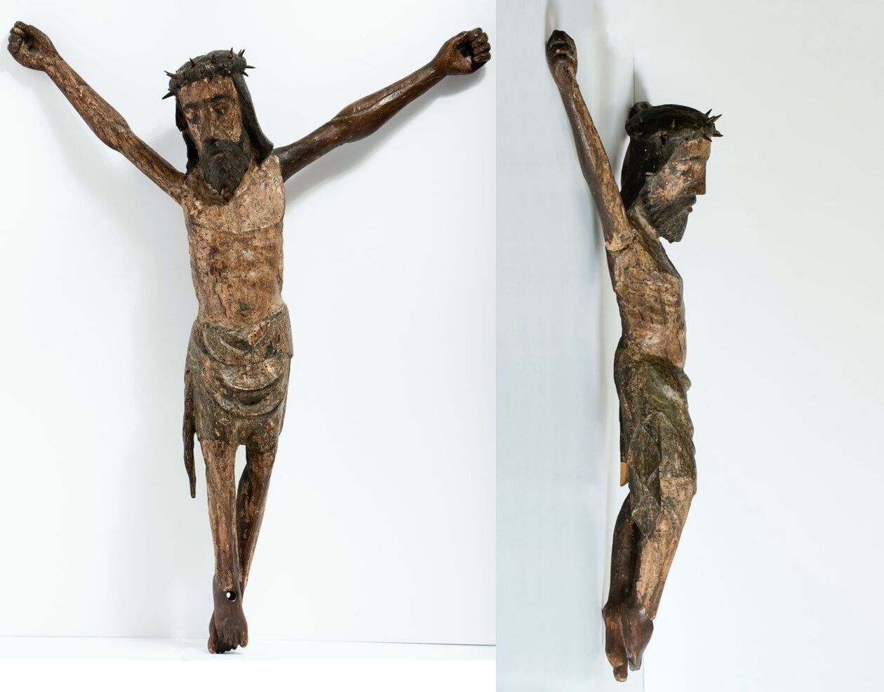 – Z literatury wynika, że w tym kościele było bardzo dużo krucyfiksów. W ołtarzu głównym, w kaplicach bocznych, na belce tęczowej i tak dalej. Ponieważ rzeźba naszego Ukrzyżowanego jest tak zbudowana, że widoczna jest zmiana proporcji głowy i tułowia w stosunku do dolnej części postaci, należy przypuszczać, że musiał wisieć dość wysoko. Mógł wisieć na belce tęczowej, mógł wisieć w którejś z bocznych kaplic. Jako archaiczny zabytek mógł mieć specjalne miejsce w kościele, mógł stać także przy ołtarzu. To wymaga kolejnych badań.