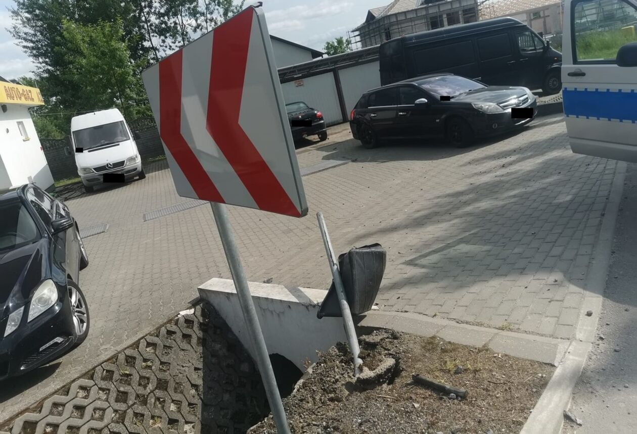 Wszystko działo się w Rogóźnie. We wtorek (17 czerwca) policjanci w Tomaszowie Lubelskim otrzymali zgłoszenie, że przy ul. Zamojskiej kierująca samochodem osobowym marki Peugeot wjechała w znak drogowy, potem w zaparkowany pojazd po czym uderzyła w metalowy garaż.