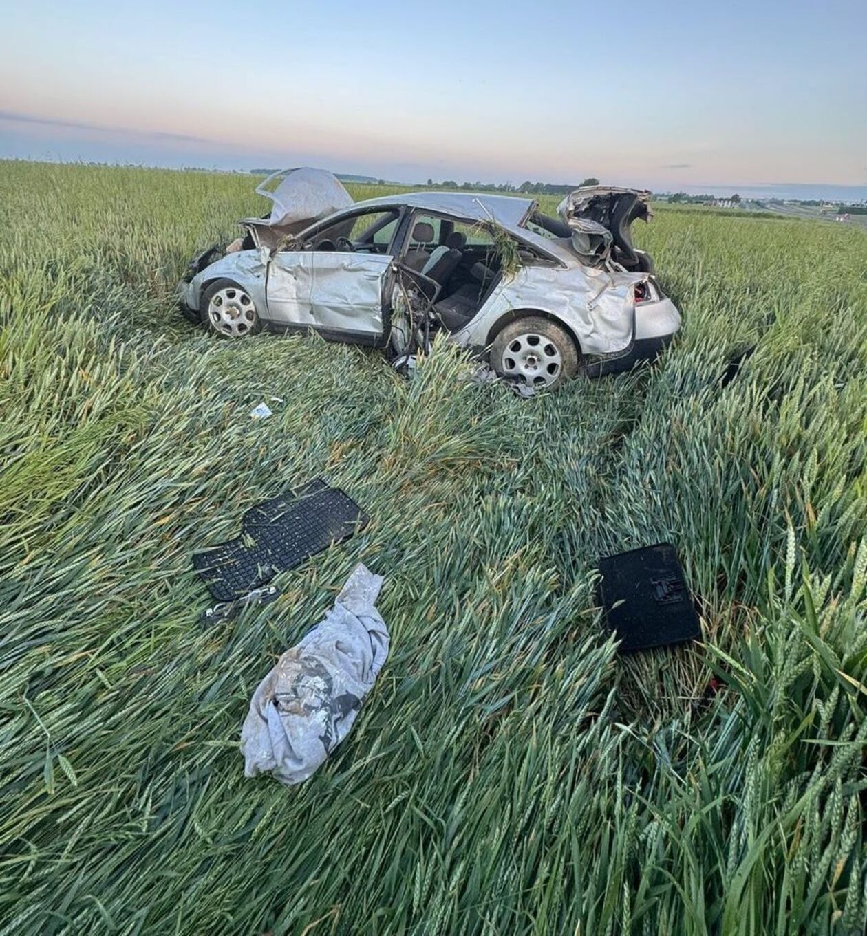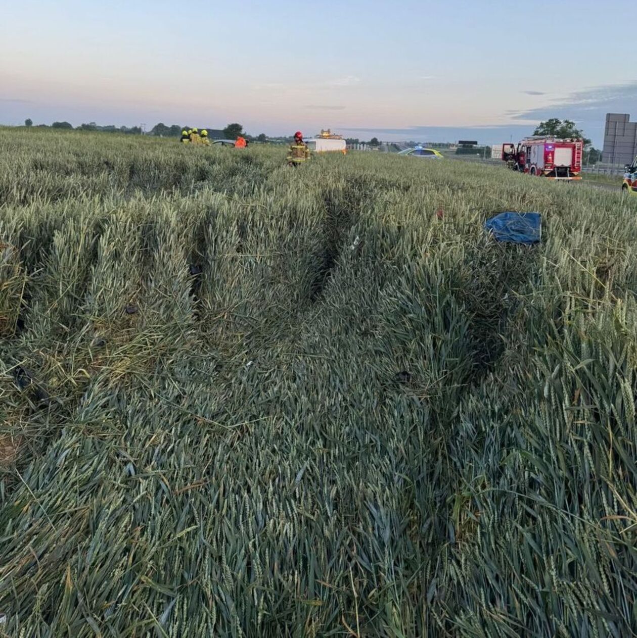Uszkodzony pojazd na polu został znaleziony przez Patrol Drogi, który powiadomił służby i przystąpił do szukania poszkodowanych. Okazało się, że 50 metrów od wraku samochodu w zbożu spał kierowca. Miał ponad 1,5 promila alkoholu w organizmie.