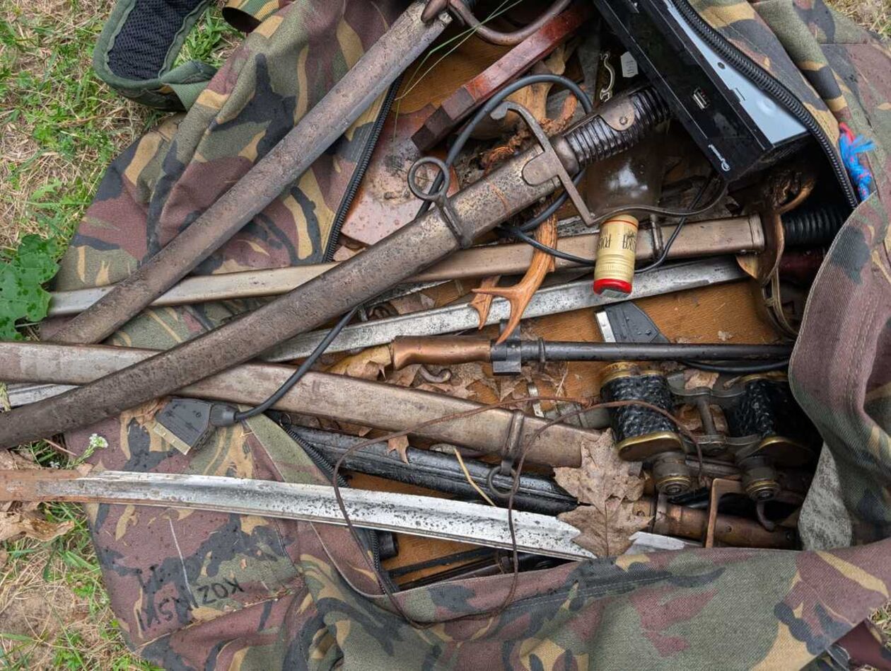 - ponad 70 sztuk broni białej, głównie historyczne szable i bagnety.