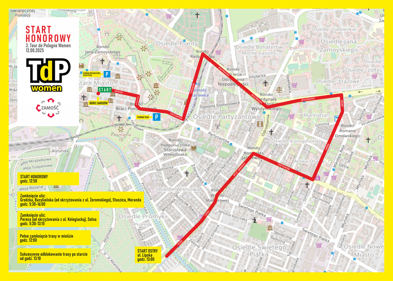 Uczestniczki Tour de Pologne Women będą we wtorek, 12 sierpnia zarówno startować, jak i finiszować w Zamościu. Dla zapewnienia bezpieczeństwa im, ale również mieszkańcom miasta trzeba było wprowadzić szreg zmian w organizacji ruchu.