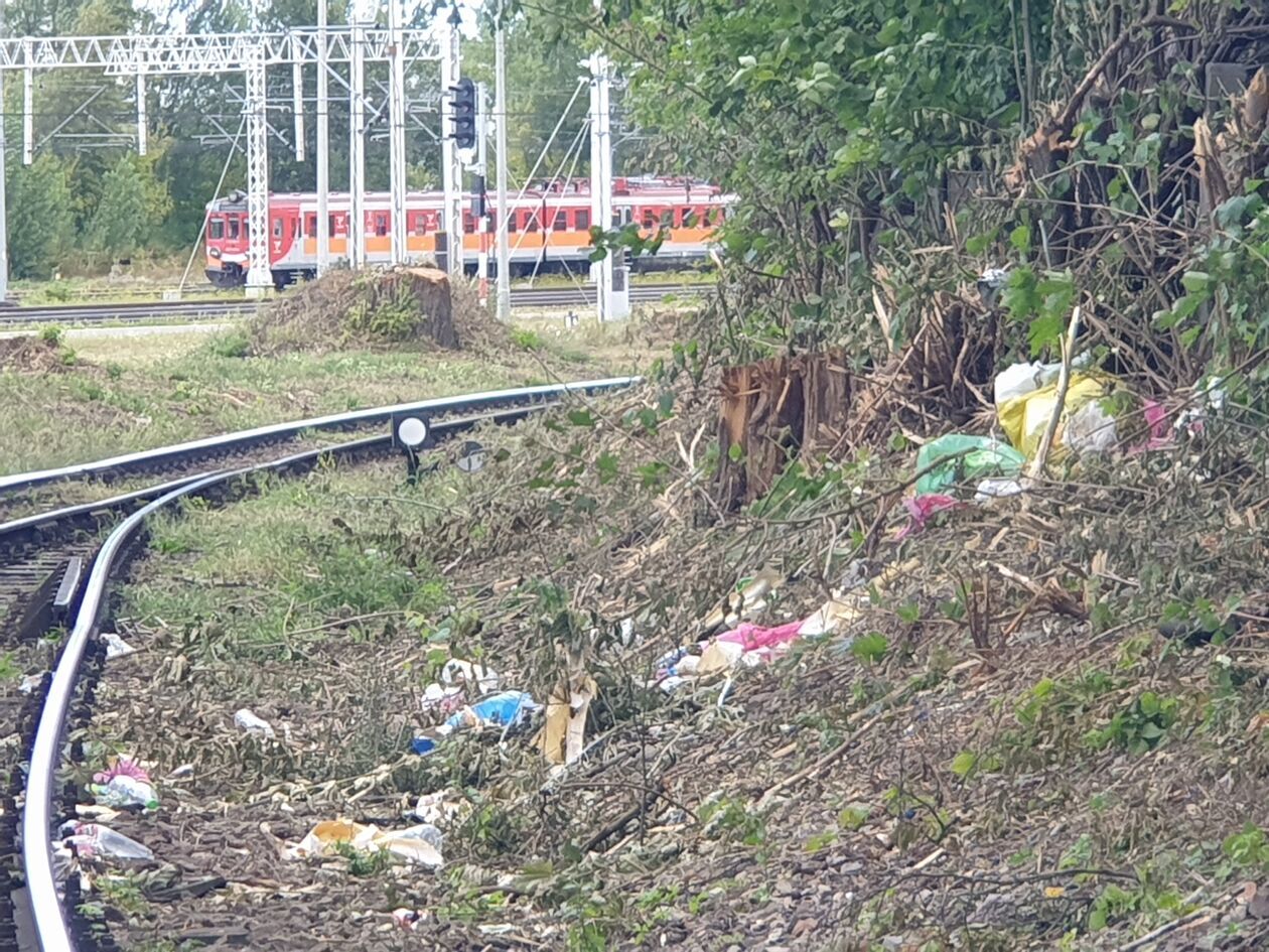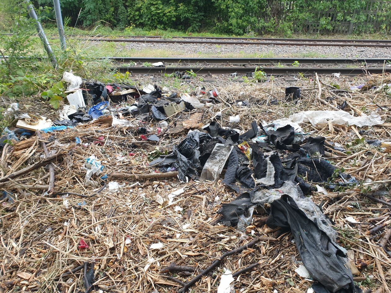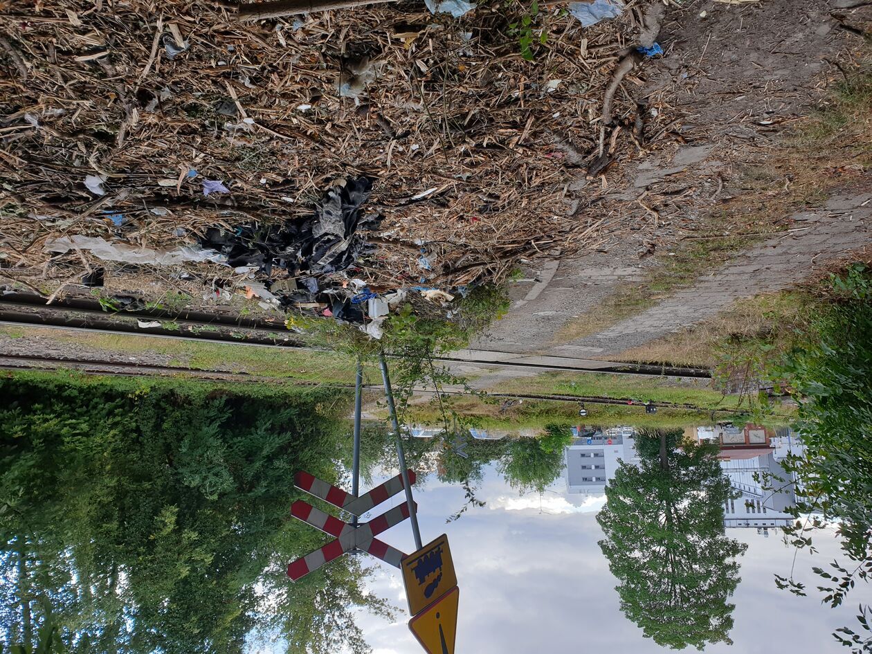Były też zdjęcia pokazujące, jak wygląda teren w okolicy torów: wszędzie widać worki ze śmieciami, które zostały rozerwane i rozrzucone przez dzikie zwierzęta.