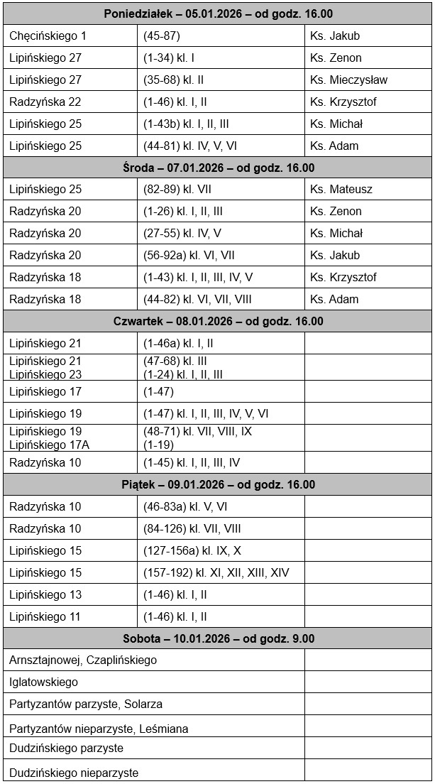 Wizyta duszpasterska od 12 do 17 stycznia: