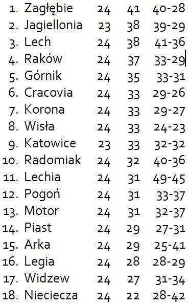 W najbliższej serii gier – już w piątek czeka ich kolejne arcyważne spotkanie z outsiderem z Niecieczy. Wygrana znowu pozwoli nieco odetchnąć w tabeli, ale strata punktów może jeszcze bardziej skomplikować sytuację.