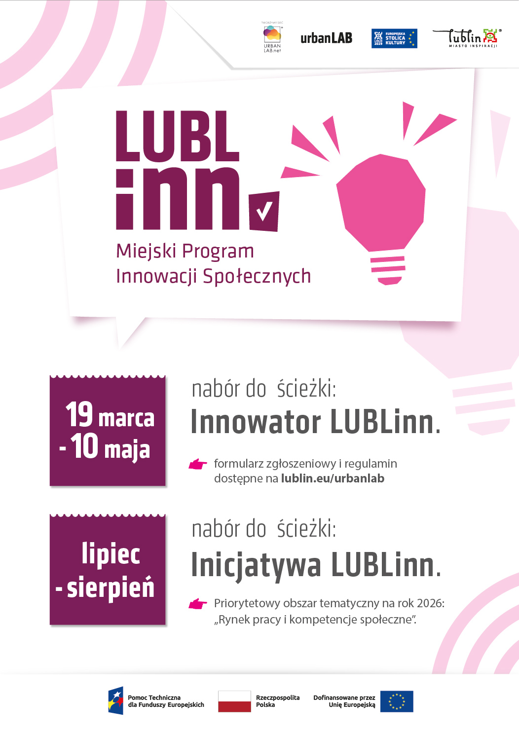 Program realizowany jest w ramach projektu „Urban Lab Lublin – Miasto dla Młodych”, finansowanego ze środków Programu Pomoc Techniczna dla Funduszy Europejskich na lata 2021–2027.