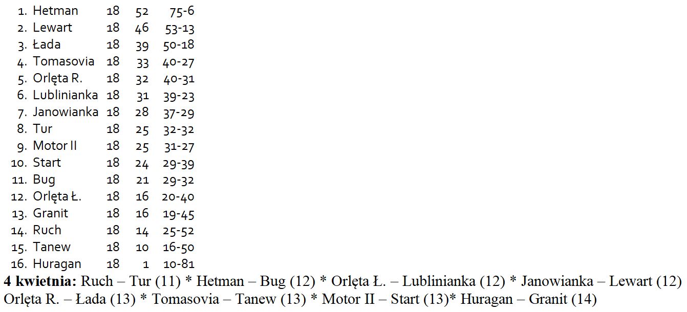 Lublinianka Lublin – Orlęta Spomlek Radzyń Podlaski 3:1 (Pacek 31, Koneczny 80, 90+2 – Obroślak 73-z karnego)