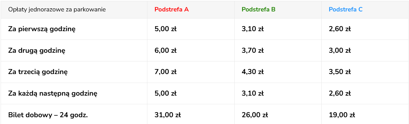 Wysokość opłat za parkowanie źródło: spp.lublin.pl